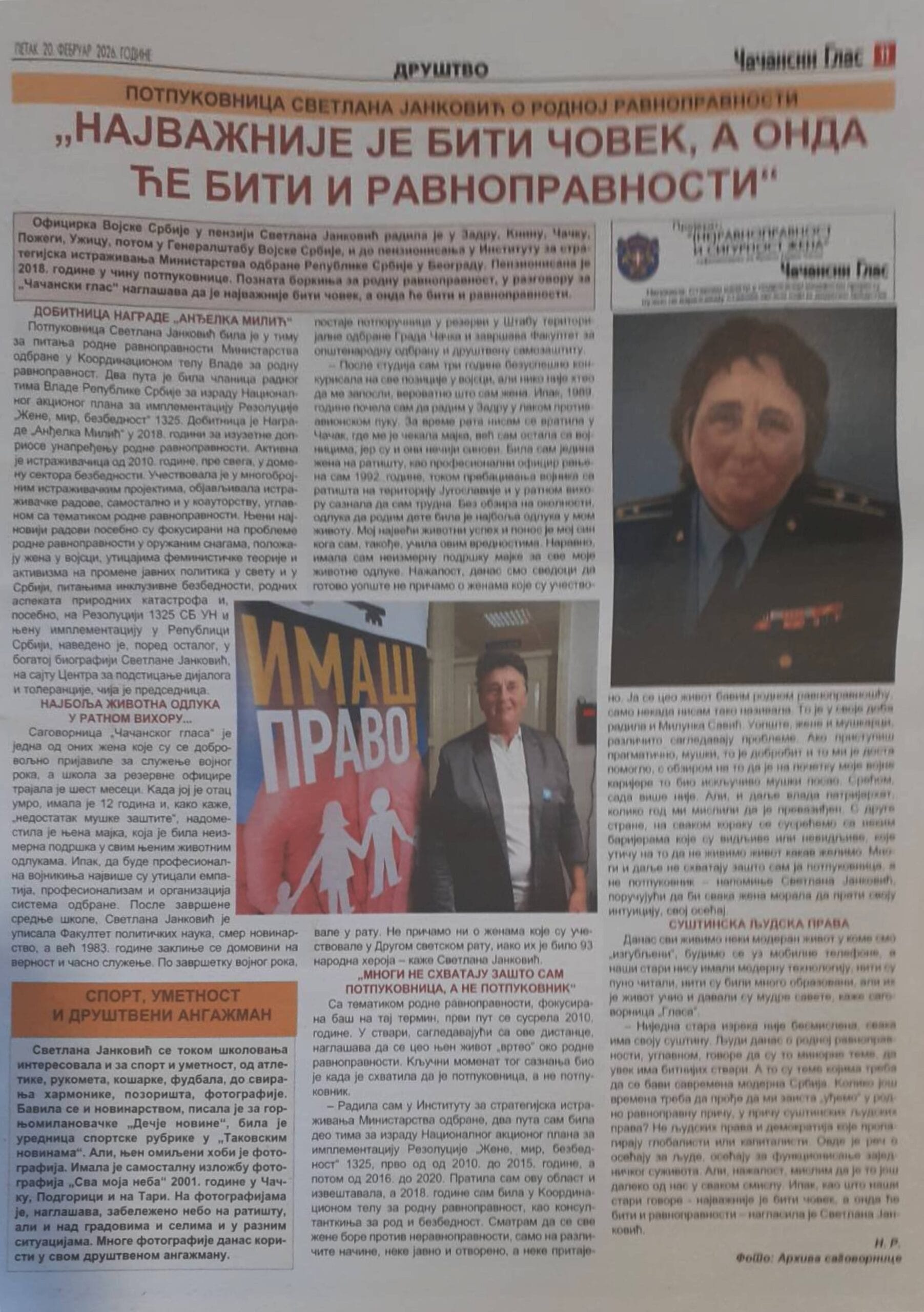 2026, „НАЈВАЖНИЈЕ ЈЕ БИТИ ЧОВЕК, А ОНДА ЋЕ БИТИ И РАВНОПРАВНОСТИ“