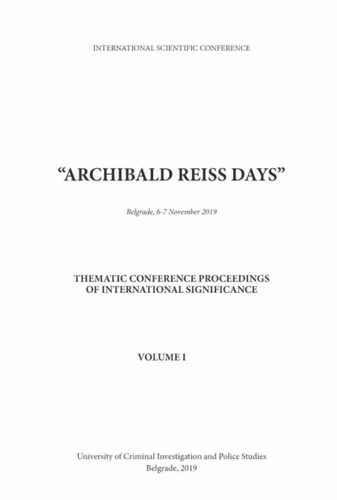 In: International scientific conference “ARCHIBALD REISS DAYS”.